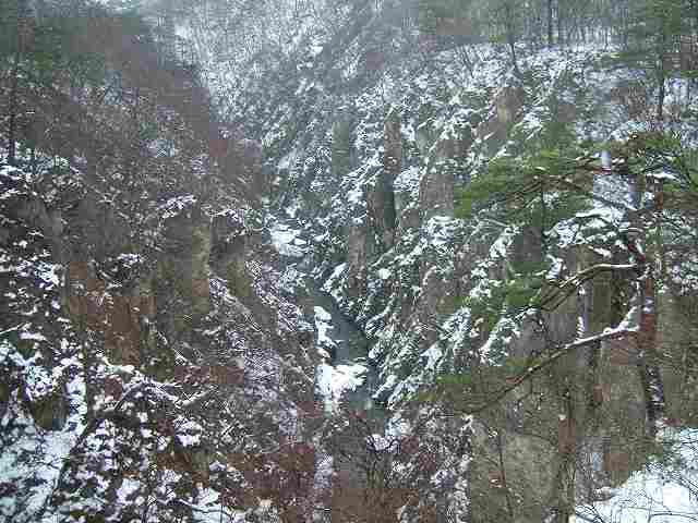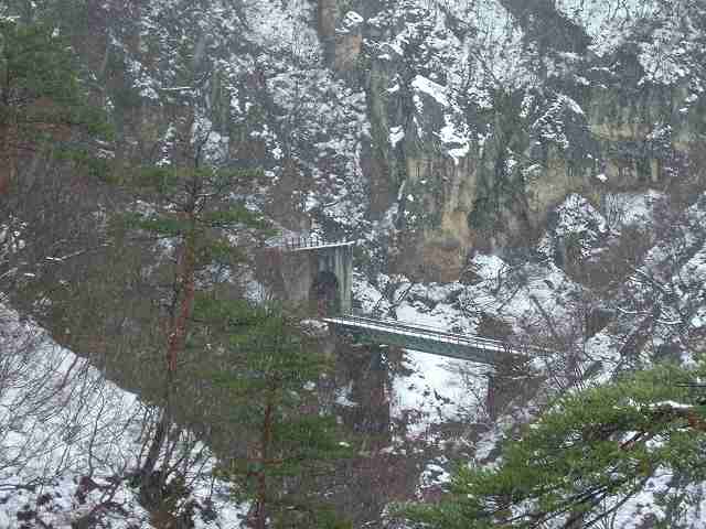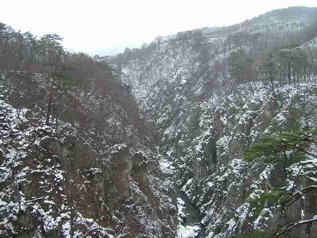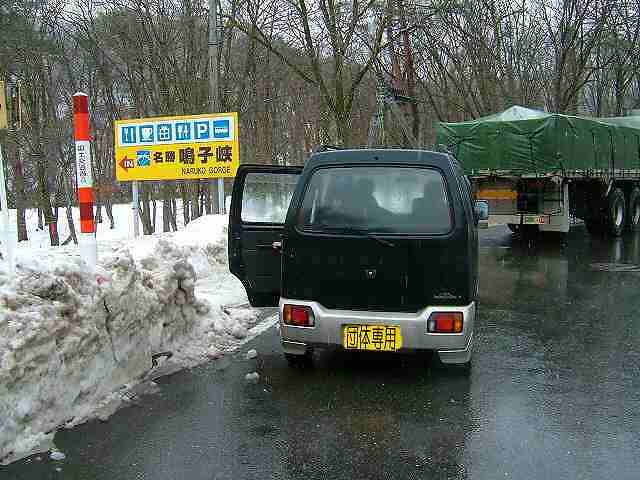さて車はさらに山形方面に進み、鳴子峡へ。山間部に入ったせいか、雪が激しくなってきました。危うし!でぶぅ〜ワゴン。