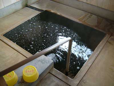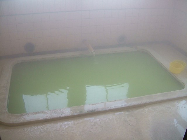 こちらがお風呂。中には硫黄のかすがたくさん浮いており、